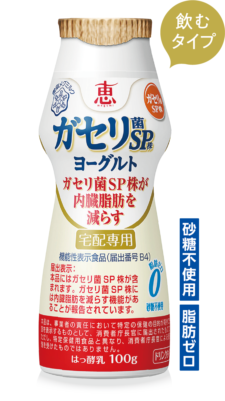 届出表示:本品にはガセリ菌SP株が含まれます。ガセリ菌SP株には、内臓脂肪を減らす機能があることが報告されています。