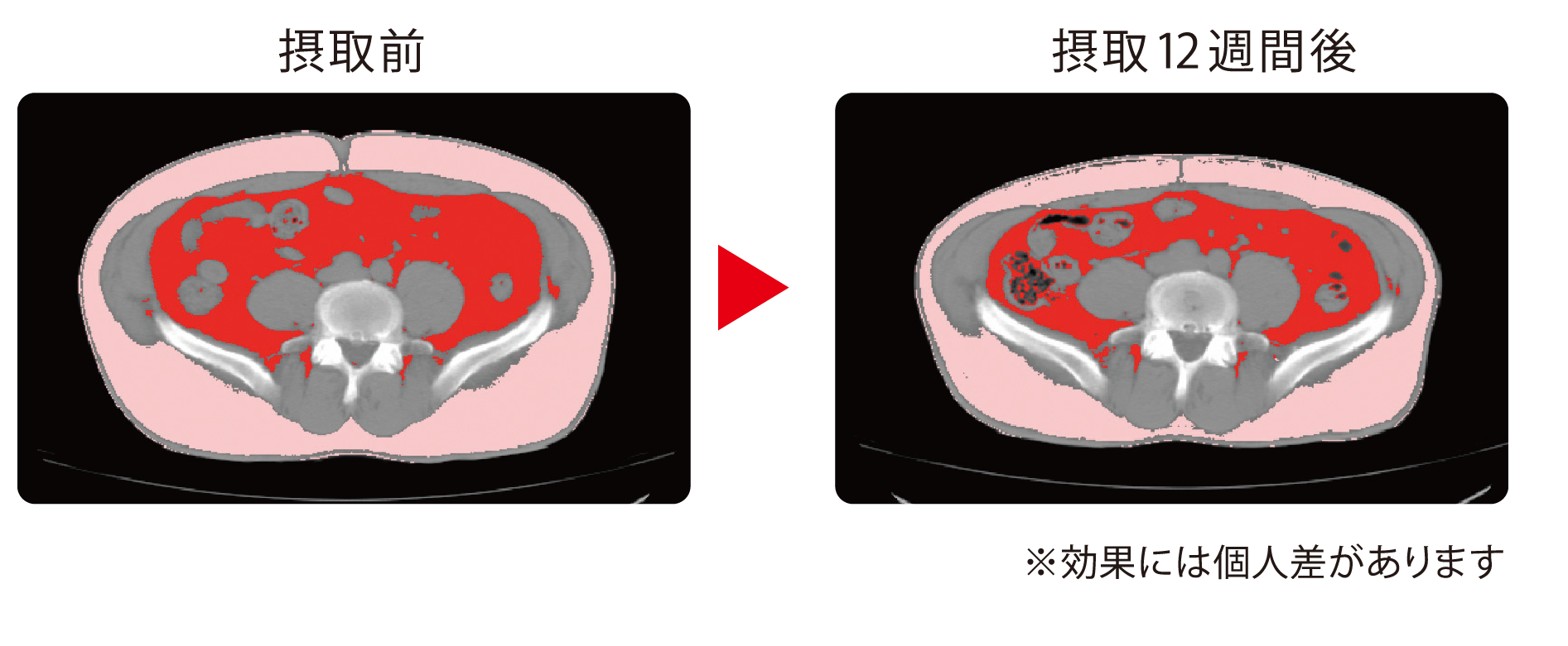 腹部断面画像は、論文内で示した内臓脂肪面積に関する測定結果の一例です。